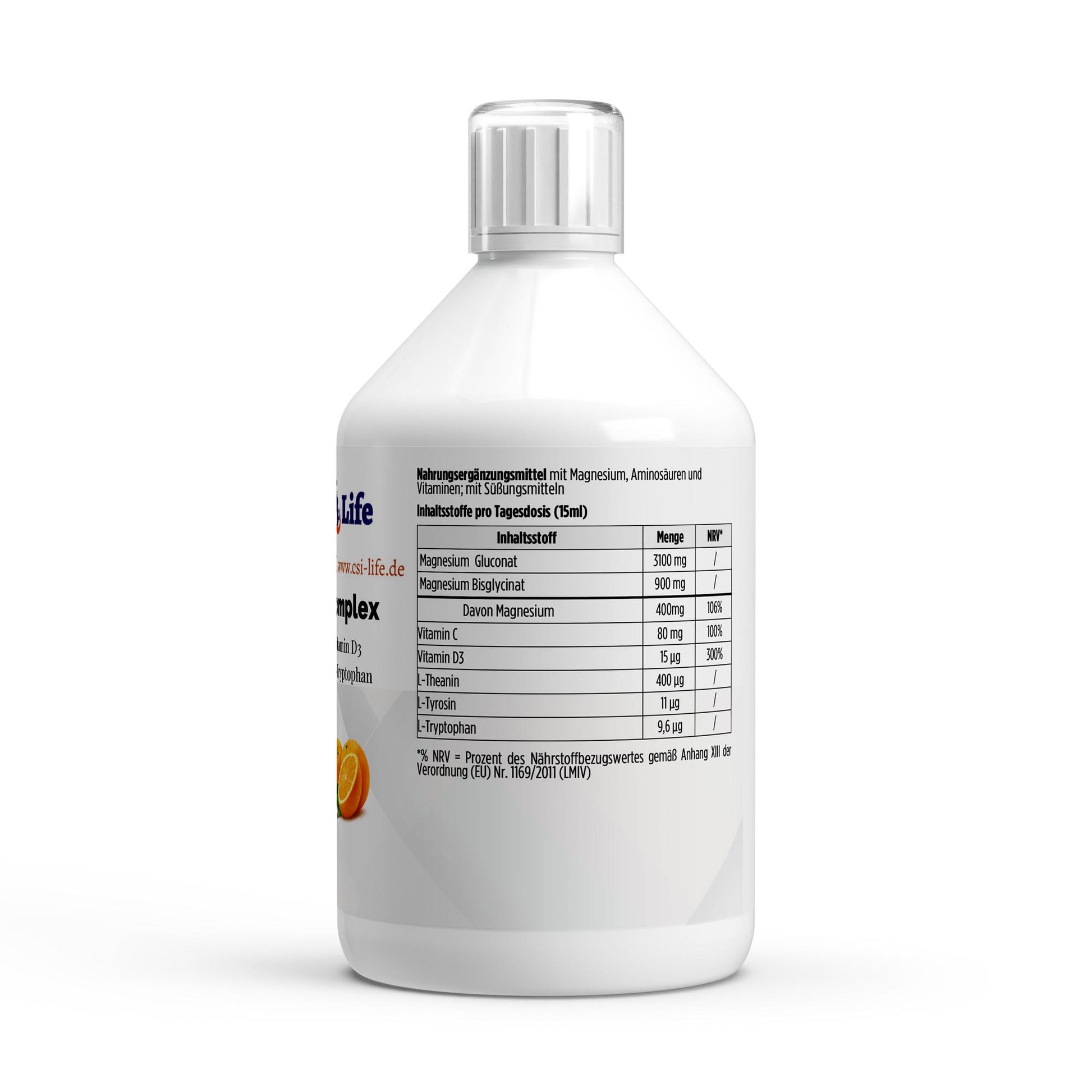- 1x Magnesium Komplex Shots Plus+ - 500ml mit Magnesium Gluconat, Magnesium Bisglycinat, Vitamin C, Vitamin D3, L-Theanin, L-Tyrosin, L-Thryptohan Empfehlung alle 2-3 Tage 15ml